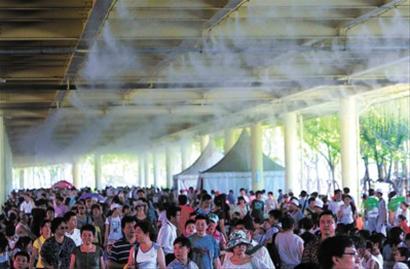 客流為何在昨天忽然集中釋放?記者走訪發(fā)現(xiàn),因為昨天氣溫較前幾天高溫天下降不少,成為游客紛至沓來的重要因素之一。盡管昨天的最高溫度仍達34攝氏度,但較上周末逼近40攝氏度的高溫已下降不少,因此一些原本準備上周前來參觀的游客改到昨天入園參觀。
