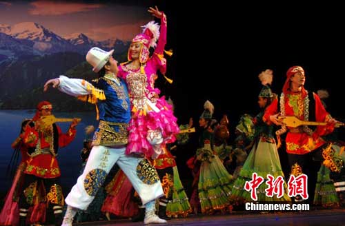 中新網(wǎng)烏魯木齊9月21日電(孫亭文 吳卓雅)上海世博會將于9月26日至30迎來新疆周。21日,世博會新疆周開幕式文藝演出節(jié)目在烏魯木齊進行“彩排”,素有“歌舞之鄉(xiāng)”之稱的新疆,民族歌舞進世博自是首選節(jié)目。