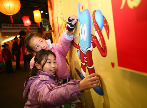 今年除夕和大年初一,上海世博會展示中心照常開放!昂毤暗谒图,金牛抖擻迎新春”,為和觀眾一起高高興興過新年,上海世博會展示中心為觀眾特別安排了豐富多彩的 新年活動套餐,有“海寶吉祥傳播”、“粘貼世博中國心”、“世博燈謎有獎大家猜”、“幸運魔方大玩轉(zhuǎn)”等。
