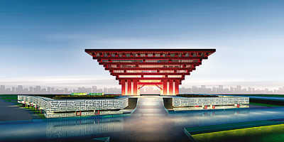 中國(guó)國(guó)家館以“東方之冠”為構(gòu)思主題,取自中國(guó)古代木結(jié)構(gòu)建筑中的元素——斗拱。16字設(shè)計(jì)理念體現(xiàn)了中國(guó)文化的深厚積淀:“東方之冠,鼎盛中華,天下糧倉,富庶百姓”。主色調(diào)運(yùn)用傳統(tǒng)、沉穩(wěn)的“故宮紅”。世博會(huì)期間,中國(guó)館將展現(xiàn)一幅宏偉的城市文明圖。