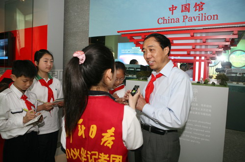 5月19日,上海世博局黨委副書記、紀(jì)委書記許偉國接受了上海市第六次少代會(huì)代表及《少年日報(bào)》小記者的采訪。小記者們就上海世博會(huì)學(xué)生優(yōu)惠門票、小朋友如何參與上海世博會(huì)等問題進(jìn)行了提問。