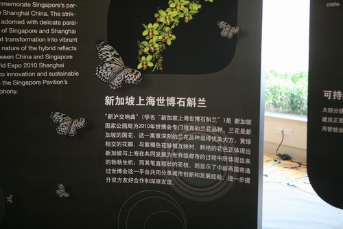據(jù)悉,蘭花是新加坡的國(guó)花,“新滬交響曲”體現(xiàn)出新加坡與上海在共同發(fā)展為世界級(jí)都市的過程中所體現(xiàn)出來(lái)的勃勃生機(jī),同時(shí)顯示了中新兩國(guó)將通過世博會(huì)這一平臺(tái)共同分享城市創(chuàng)新和發(fā)展經(jīng)驗(yàn),進(jìn)一步提升雙方友好合作和深厚友誼。