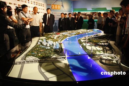 7月5日,上海世博會倒計時300天之際,由世博會組委會主辦的“走進(jìn)世博會”大型展覽在北京首都博物館開幕,國務(wù)院副總理王岐山、上海市委書記俞正聲等出席啟動儀式。本次展覽匯集了最全面的上海世博會籌辦進(jìn)展資料,其中首次亮相的59個展館實物模型、中國館“萬花筒”、張藝謀團(tuán)隊最新制作的世博園虛擬電影,是本次展覽會的亮點(diǎn)。中新社發(fā) 鄭雄增 攝