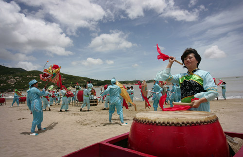11日上午,“魅力東方迎世博--走進(jìn)寧波”大型直播活動(dòng)在象山松蘭山海灘舉行。直播活動(dòng)全面報(bào)道了寧波市迎接2010年上海世博會(huì)的情況,各類主題剪紙表演、專家訪談、小朋友百米兒童畫、沙灘趣味運(yùn)動(dòng)會(huì)、手語表演、民俗演出等活動(dòng),讓夏日的海灘活力十足。上海世博局國(guó)內(nèi)參展顧問黃耀誠(chéng)現(xiàn)場(chǎng)向5位幸運(yùn)市民頒發(fā)了世博請(qǐng)柬,送出了來年之約。