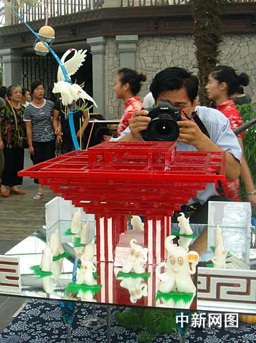 比賽現(xiàn)場,方糕、麻球、眉毛餃、菜塔餅……一道道色、香、味俱全的江南特色小吃在農(nóng)村新天地里擺開了擂臺。不少來此旅游觀光的游客,在品嘗了這些原汁原味的江南傳統(tǒng)小吃之后,還不禁躍躍欲試、一試身手,與金山的巾幗美食高手們一起互動競秀。此外,由美食巧匠們制作的一組演繹上海世博會主題的創(chuàng)意小吃作品,表達了金山姐妹喜迎世博的美好心情。