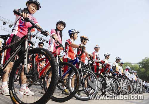 昨日(9月6日)上午,21名上海世博會(huì)志愿者帶著吉祥物“海寶”,騎著單車抵達(dá)武漢,并在漢口江灘與江城志愿者共同舉行“迎世博·城市演繹——長江萬里行”活動(dòng)武漢站儀式。