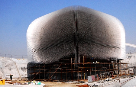 被中國公眾昵稱為“蒲公英”的英國館已“綻放”待客。在初春的寒風(fēng)中,這座造型別致的展館滿身的“觸須”搖曳生姿,充滿動感。