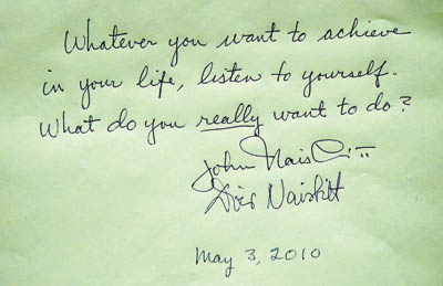 身為上海世博會青年周“時間芯片”活動終審評委的奈斯比特夫婦(見上圖),將以怎樣的標(biāo)準(zhǔn)評判青年關(guān)于未來的作品?他們對未來城市生活的趨勢有何預(yù)測?5月3日下午,本報記者獨家專訪了奈斯比特先生及其夫人多麗絲·奈斯比特。