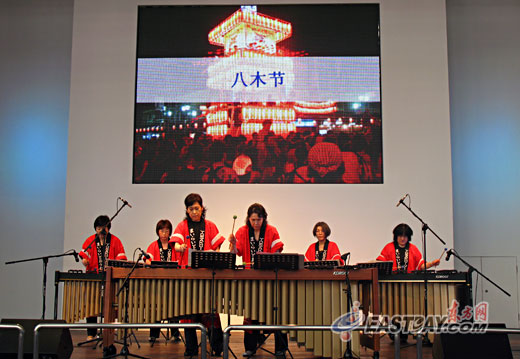 東方網(wǎng)記者向場上工作人員了解到,在日本產(chǎn)業(yè)館,每天都會(huì)上演四場音樂會(huì),時(shí)間分別為11:00、13:30、16:00和18:30,諸多來自日本本土的專業(yè)級(jí)音樂團(tuán)體將為觀眾帶來風(fēng)格迥異的音樂節(jié)目,且每周都有不同的樂團(tuán)前來獻(xiàn)演。在這里,藝術(shù)家們將用或民族、或世界的樂器演奏中日等國的民族樂曲,而本周的節(jié)目將由日本著名的馬林巴樂團(tuán)“北星會(huì)”出演。