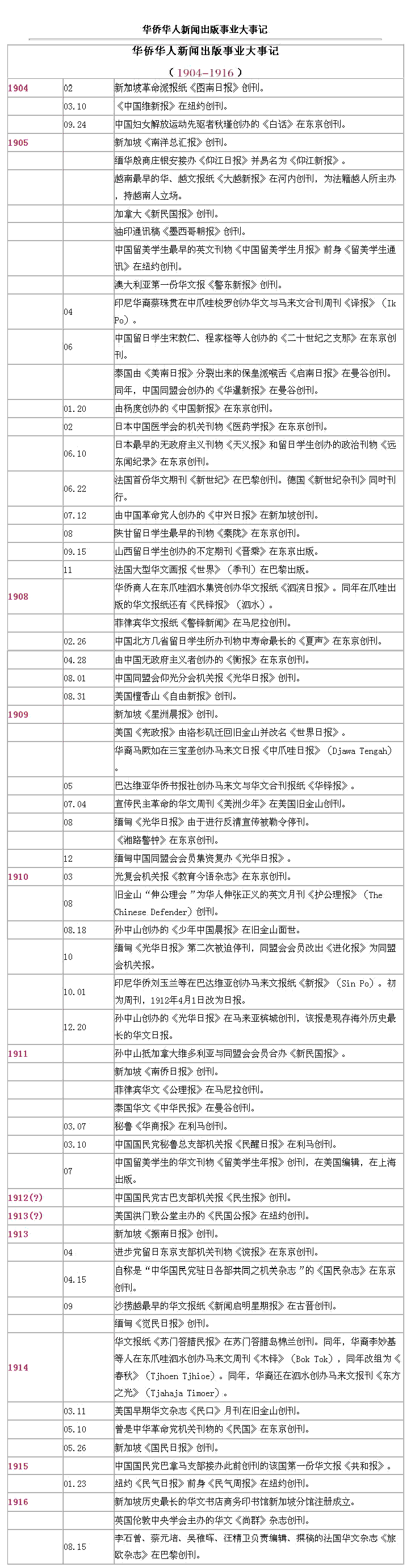 海外華文傳媒大事記