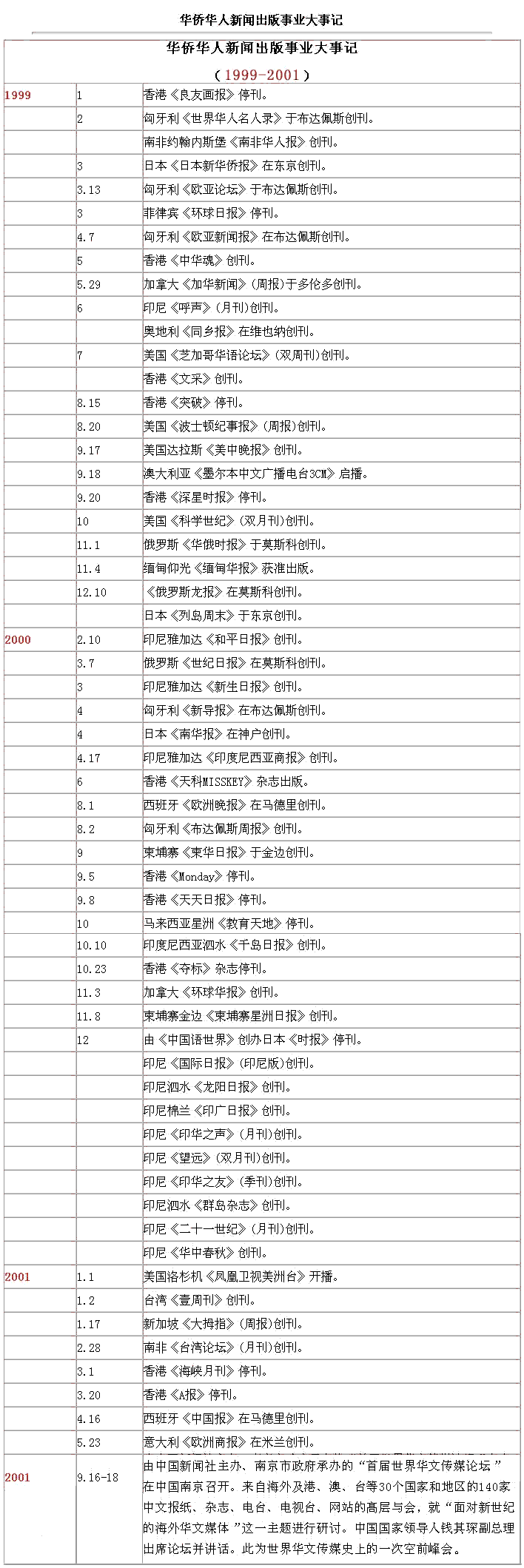 海外華文傳媒大事記