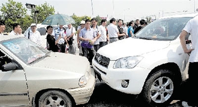 “兩車相撞后,豐田車司機(jī)跳下來,大聲對我說,他在洛陽報(bào)警多次,說他家里有毒品,可洛陽警方一直不理他。他跑到鄭州,找公安廳找不到,就在這里撞車。”