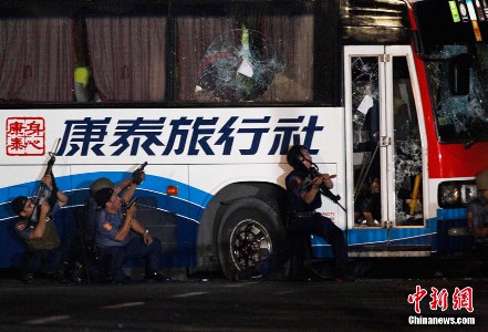 至傍晚時(shí)分,旅游巴士曾試圖向前開(kāi),但被警察開(kāi)槍打爆輪胎,以阻止其移動(dòng),事件即時(shí)轉(zhuǎn)趨緊張,F(xiàn)場(chǎng)傳出多次槍聲后,被挾持的旅游巴司機(jī)乘亂逃出。當(dāng)?shù)匾欢葌鞒鱿ⅲ溉栽谲?chē)上的15名人質(zhì)已全部被殺。