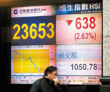 中新網(wǎng)1月31日電 據(jù)香港媒體報道,憂慮美國減息幅度或遜于預(yù)期等因素,令港股30日在期指結(jié)算日出現(xiàn)先升后急回,恒生指數(shù)倒跌638點收市,報23653點,再考驗牛熊分界。香港證券界相信,若美國減息半厘,港股有望反彈;若僅減息1/4厘,港股或再跌。
