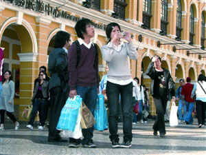 中新網(wǎng)3月25日電 據(jù)澳門(mén)日?qǐng)?bào)報(bào)道,復(fù)活節(jié)假期最后一天,街頭巷尾依然人頭涌涌。然而,近年澳門(mén)通脹高踞,旅客訪澳“使費(fèi)”同樣暴漲。按澳門(mén)統(tǒng)計(jì)局此前公布,2007年澳門(mén)旅游物價(jià)指數(shù)較2006年上升9.51%,升幅比較明顯的有雜貨、餐飲及住宿類(lèi)!笆官M(fèi)”較兩年前高出30%至40%。