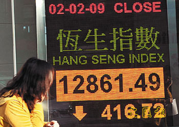 中新網(wǎng)2月3日電 據(jù)香港《文匯報(bào)》報(bào)道,外圍下跌令港股結(jié)束一連兩天的升市,恒指2日低開84點(diǎn)后再向下,最多跌過545點(diǎn),收?qǐng)?bào)12861點(diǎn),跌416點(diǎn),成交疲弱,只有357億元。
