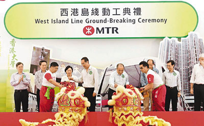 西港島線是現(xiàn)有港島線的延線,全長約3公里,共設3個車站,包括西營盤、大學及堅尼地城,該線10日舉行動工典禮。唐英年出席典禮致辭時說,西港島線是近年首條落實動工的新鐵路,連接上環(huán)和西區(qū),通車后往返堅尼地城與上環(huán)只需8分鐘,而往返堅尼地城與尖沙嘴也只需14分鐘,預計未來50年節(jié)省的車程時間,可為香港帶來620億元的經(jīng)濟效益。