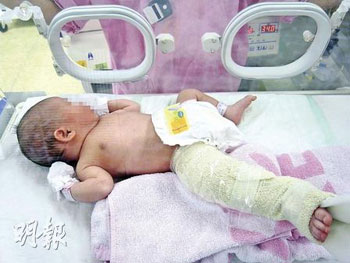 中新網(wǎng)9月23日電 據(jù)香港《明報(bào)》報(bào)道,一名來(lái)自佛山的婦人日前到香港浸會(huì)醫(yī)院剖腹生下女嬰,父母稱女嬰出生時(shí)正常且“撐手撐腳”,但3小時(shí)后醫(yī)生才告知女嬰右腿骨折,父母懷疑是醫(yī)護(hù)人員疏忽照顧所致,已報(bào)警求助。