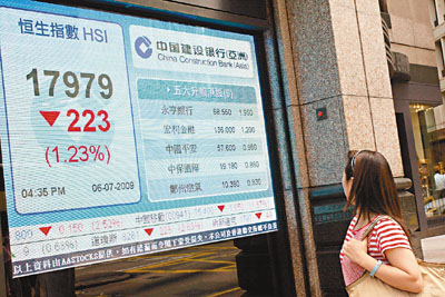 中新網7月7日電 據香港《文匯報》報道,港股6日走勢反復,低開近200點后,一度倒升55點,但午后大市再下跌,全日呈“倒V形”走勢,恒指收報17979點,跌223點,全日成交只有545億元,即月期指低水45點。
