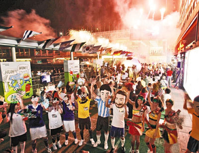 今年世界杯由收費(fèi)電視直播,有直播賽事的餐廳食肆自然成為“球迷樂園”,銅鑼灣、灣仔、旺角的大部分食肆都聚集大批球迷,有不少人穿上支持球隊(duì)的球衣,為世界杯打氣。