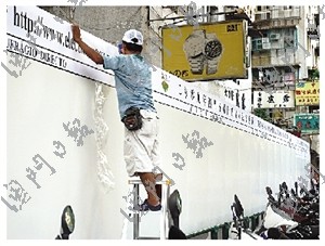 另一個熱門地點,是關(guān)閘近工人球場的宣傳板,3個選團(tuán)會以關(guān)閘為“起點”,之后再去其它地點張貼宣傳海報。