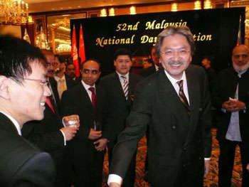 中新網(wǎng)10月10日電 據(jù)香港《大公報》報道,香港財政司司長曾俊華自從做完“通波仔”心臟手術后已火速復工,9日更首次出席公開場合,為慶祝馬來西亞52周年國慶酒會擔任主禮嘉賓。
