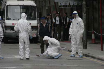 警方初步鎖定福泰大廈及百利寶商業(yè)中心兩幢商廈,作為案情重組的地點。行動于20日凌晨5時展開,近百人到場,包括西九龍總區(qū)重案組探員、特區(qū)政府化驗師,一輛有升降臺的消防車也奉召到場協(xié)助。