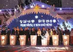 亮燈儀式昨日下午六時(shí)舉行。隨著主禮嘉賓按鈕,全澳的節(jié)日燈飾實(shí)時(shí)放亮,璀璨奪目。文化中心兒童合唱團(tuán)獻(xiàn)唱圣誕歌曲及圣詩(shī),喜悅的樂(lè)章、清脆的歌聲遍布廣場(chǎng);圣誕老人在現(xiàn)場(chǎng)向嘉賓及居民派發(fā)糖果,逗得小朋友歡天喜地。