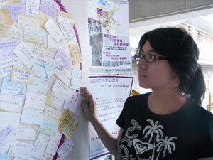 徐藝瑋表示,事發(fā)當(dāng)晚澳大內(nèi)地學(xué)生會立即召開緊急會議,發(fā)起募捐及籌備悼念晚會,也放置了祝福板讓同學(xué)向?yàn)?zāi)區(qū)的同胞送上祝福。她表示澳大有不少來自四川及附近受震地區(qū)的同學(xué),他們十分擔(dān)心家里的情況,連日徹夜難眠。希望通過這次活動,為災(zāi)區(qū)的同胞送上支持外,也給予身邊正為家人情況擔(dān)憂的同學(xué)一點(diǎn)安慰。