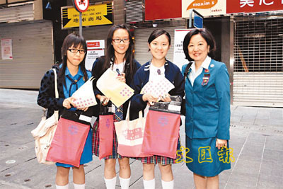 中新網(wǎng)12月4日電 香港女童軍總會(huì)全港賣旗日早前圓滿舉行,今次賣旗籌款活動(dòng)除了女童軍會(huì)員和家長(zhǎng)們?nèi)χС滞,更獲得全港接近400間中、小學(xué)及其它機(jī)構(gòu)的鼎力支持,令今次參與賣旗的義工人數(shù)達(dá)到破紀(jì)錄的1.2萬多人,成績(jī)令人振奮。