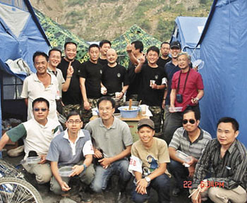 到晚上,18個(gè)人擠在兩個(gè)帳篷內(nèi)睡覺。莫昭友更不敢多喝水,擔(dān)心半夜要起身如廁,一來怕黑,二來怕吵醒其它隊(duì)員。至于吃的,他說帶往災(zāi)區(qū)的食物很少,幾乎三餐是吃面包、罐頭等干糧,“災(zāi)區(qū)的環(huán)境真的很難適應(yīng)!毙叶(dāng)?shù)鼐仍藛T得知他們只吃干糧,晚上煮粥給他們吃。