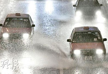 近日天氣不穩(wěn),3日傍晚香港普遍地區(qū)下大雨,天文臺發(fā)出一個多小時黃色暴雨警告,灣仔告士打道一帶變成澤國,但暴雨來得快、去得快,渠務署沒有接到水浸報告。(圖片來源:明報)