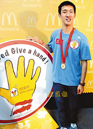 中新網(wǎng)9月27日電 據(jù)香港《文匯報》報道,剛在2008殘奧會勇奪200米金牌兼打破世界紀(jì)錄的香港“神奇小子”蘇樺偉26日化身慈善大使,出席“麥當(dāng)勞叔叔之家慈善基金日”為患病兒童籌款。