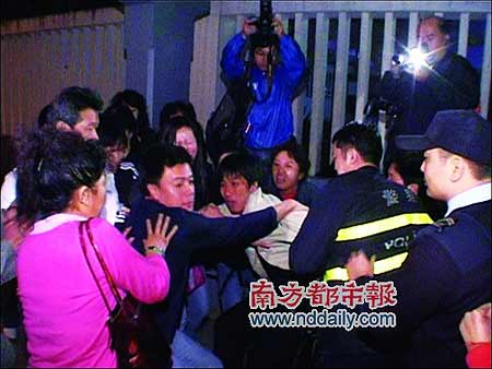 晚上近8時(shí),涉事警員在同僚護(hù)送下上了警車(chē),現(xiàn)場(chǎng)游客見(jiàn)狀一擁而上,要求相關(guān)警員留下,雙方發(fā)生推撞。其間,多名警員強(qiáng)行將姓董的領(lǐng)隊(duì)及男領(lǐng)隊(duì)等5人帶走,游客見(jiàn)狀阻止。