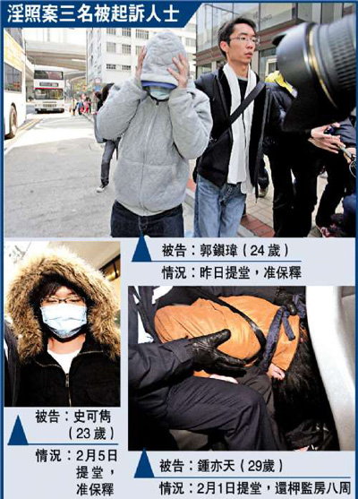控方在庭上呈上十一張涉案相片,強(qiáng)調(diào)內(nèi)容十分不雅,指相片絕不能在法庭以外地方公開?胤秸J(rèn)為案情非常嚴(yán)重,擔(dān)心被告會(huì)棄保潛逃及騷擾證人,另外,控方又指被告精通計(jì)算機(jī),可在任何地方再上載照片,對(duì)公眾繼續(xù)造成影響,所以反對(duì)其保釋外出。