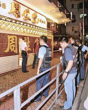 大隊香港警員趕至,穿上避彈衣,荷槍實彈兜截仍沒有結(jié)果。被劫金行為周生生金行,開設在大埔道近北河街交界處地下,營業(yè)時間由上午10時至下午7時半。