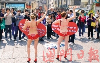 其中一人表示,穿內(nèi)衣宣傳主要是吸引公眾注意,她們是第一次在澳門進行相關(guān)活動,但在世界其它地方就進行超過100次。她有感澳門是個浪漫和熱情的城市,且公民接受能力強,故特選情人節(jié)前在澳宣傳,相信能有效傳播善待動物的信息。