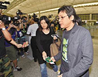 當(dāng)衛(wèi)詩父親剛一出現(xiàn),在場記者一擁而上。當(dāng)被問到是否有信心可帶女兒衛(wèi)詩回港,是否感到擔(dān)心及緊張,為何衛(wèi)蘭沒有同行,預(yù)備逗留多少天等,衛(wèi)詩父親全程均沒有回應(yīng),也沒有應(yīng)要求停下來給記者拍照。其間一度引起混亂,有鐵欄被推倒,更有記者在混亂中撞柱,幸無大礙。