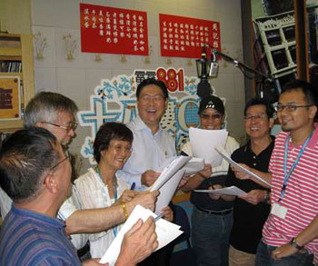 圖:馬時(shí)亨(中)客串電臺(tái)節(jié)目。(圖片來(lái)源:大公報(bào))