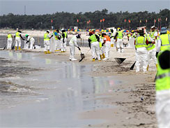 颶風引發(fā)1.8米的大浪,風速達到每小時25公里。大浪卷著石油和原油塊侵蝕著美國路易斯安那州、阿拉巴馬州和佛羅里達州的海灘。路易斯安那州的海灘清潔員稱,大片石油被不斷地沖向沙灘,黑乎乎的原油塊猶如蘋果一般大。