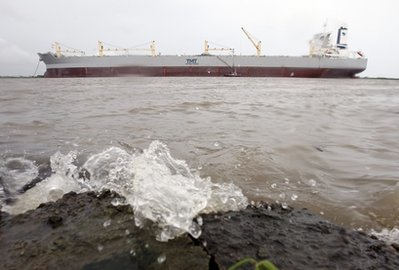 輪船已于今天抵達(dá)美國路易斯安那州的海域,先進行試用。在得到海岸警衛(wèi)隊的認(rèn)可后,這艘世界最大的浮油回收船將駛?cè)肽鞲鐬陈┯偷攸c。