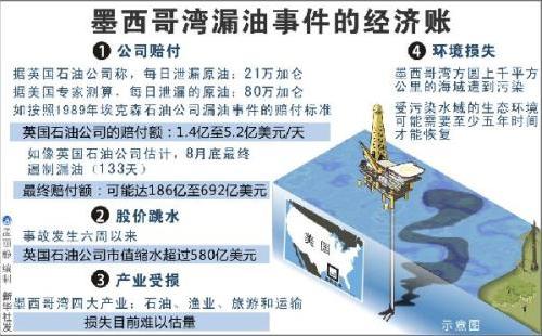 瑞士信貸銀行說,英石油清理漏油和應(yīng)對(duì)法律訴訟花費(fèi)將累計(jì)370億美元;高盛公司估計(jì)為330億美元;雷蒙德—詹姆斯合伙公司分析師說,美國涉及環(huán)境案件的司法制度“更有利原告方”,英石油“賬單”稅后將接近630億美元。