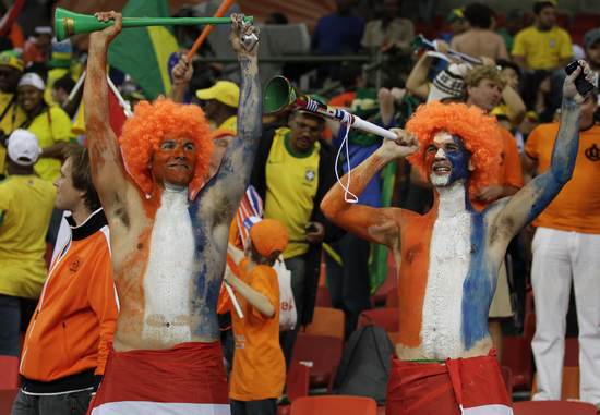 類(lèi)似的球迷在南非各地隨處可見(jiàn),在東道主南非隊(duì)小組賽出局之后,支持荷蘭便成為他們的首選。