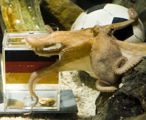 保羅是一條普通章魚,在無脊椎動(dòng)物中,這類章魚智商最高。在實(shí)驗(yàn)當(dāng)中人們發(fā)現(xiàn),章魚似乎可以區(qū)別不同物體的亮度、尺寸和形狀。