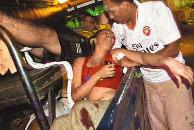 欖球會內(nèi)一片狼藉,桌椅四翻、血肉橫飛,生還者只能呆站于尸體堆中。一家專門協(xié)助童兵的美國志愿機(jī)構(gòu)證實,機(jī)構(gòu)的一名美籍職員身亡。