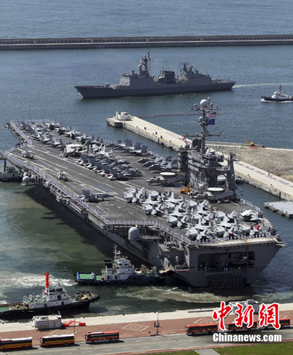 中新網(wǎng)7月21日電 據(jù)韓聯(lián)社報道,美國海軍第7艦隊的航空母艦“喬治·華盛頓”號21日抵達(dá)釜山港,準(zhǔn)備參加從25日開始的韓美聯(lián)合軍演。