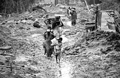 在斯瓦特山谷一條村莊,洪災(zāi)為美軍和伊斯蘭武裝分子開(kāi)辟新戰(zhàn)線,雙方爭(zhēng)相向受塔利班威脅地區(qū)的災(zāi)民派發(fā)援助物資。但30歲災(zāi)民毛拉表示,誰(shuí)派發(fā)物資也沒(méi)所謂,他只想知道自己和家人如何找到糧食充饑,及盡快重建家園。