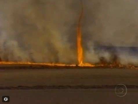 據(jù)報道,這條“火龍風”于24日被拍攝到!盎瘕垺痹谌紵奶镆吧巷w舞高約數(shù)米高,阻斷了一條公路。為了熄滅這條“火龍”,當?shù)爻鰟恿酥鄙龣C。同時,圣保羅市政府為預防新火情發(fā)生,已下令禁止麥收后火燒莊稼地。