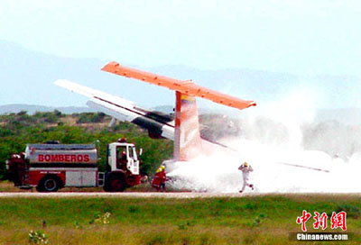 委內(nèi)瑞拉國(guó)家電視臺(tái)畫面顯示,飛機(jī)在一個(gè)垃圾場(chǎng)斷成兩截,機(jī)翼飛出幾米外。有當(dāng)?shù)毓賳T介紹,飛行員就在飛機(jī)出事前幾秒曾發(fā)出呼救信號(hào)。這名沒有透露姓名的官員表示,事故原因可能是因?yàn)轱w機(jī)失控。