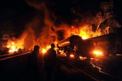中新網(wǎng)10月7日電 綜合報(bào)道,塔利班分子6日在巴基斯坦西部奎達(dá)附近出擊,攻擊北約部隊(duì)的一支運(yùn)輸車(chē)隊(duì),燒毀20多輛運(yùn)油車(chē),有一個(gè)司機(jī)不幸身亡。之后,在西北部城市瑙謝拉,又有至少36輛油罐車(chē)遭武裝分子襲擊起火。連昨天的兩次攻擊在內(nèi),過(guò)去的一星期內(nèi),這類(lèi)事件已經(jīng)發(fā)生5次。
